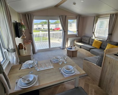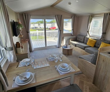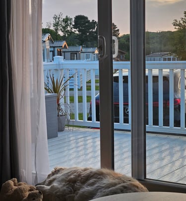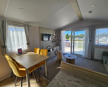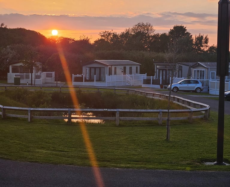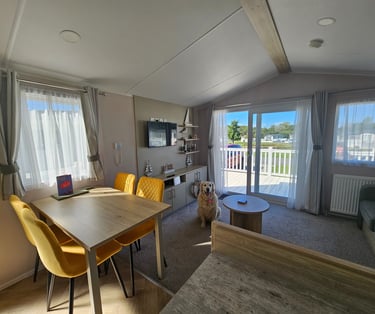 Enjoy a relaxing stay in our pet-friendly caravan with a spacious layout, wraparound decking, and beautiful views of the pond, perfect for sunny days and sunsets.